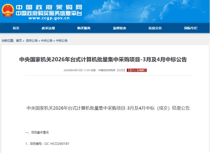 4月10日,中央國(guó)家機(jī)關(guān)公布了3月和4月的臺(tái)式機(jī)批量集采結(jié)果。本次采購(gòu)總預(yù)算達(dá)到810萬(wàn)元,五個(gè)配置包全部中標(biāo),無(wú)一流標(biāo)。今天我們就來(lái)拆解這份剛剛出爐的央采臺(tái)式機(jī)公告所隱藏的一些背后邏輯和趨勢(shì)!